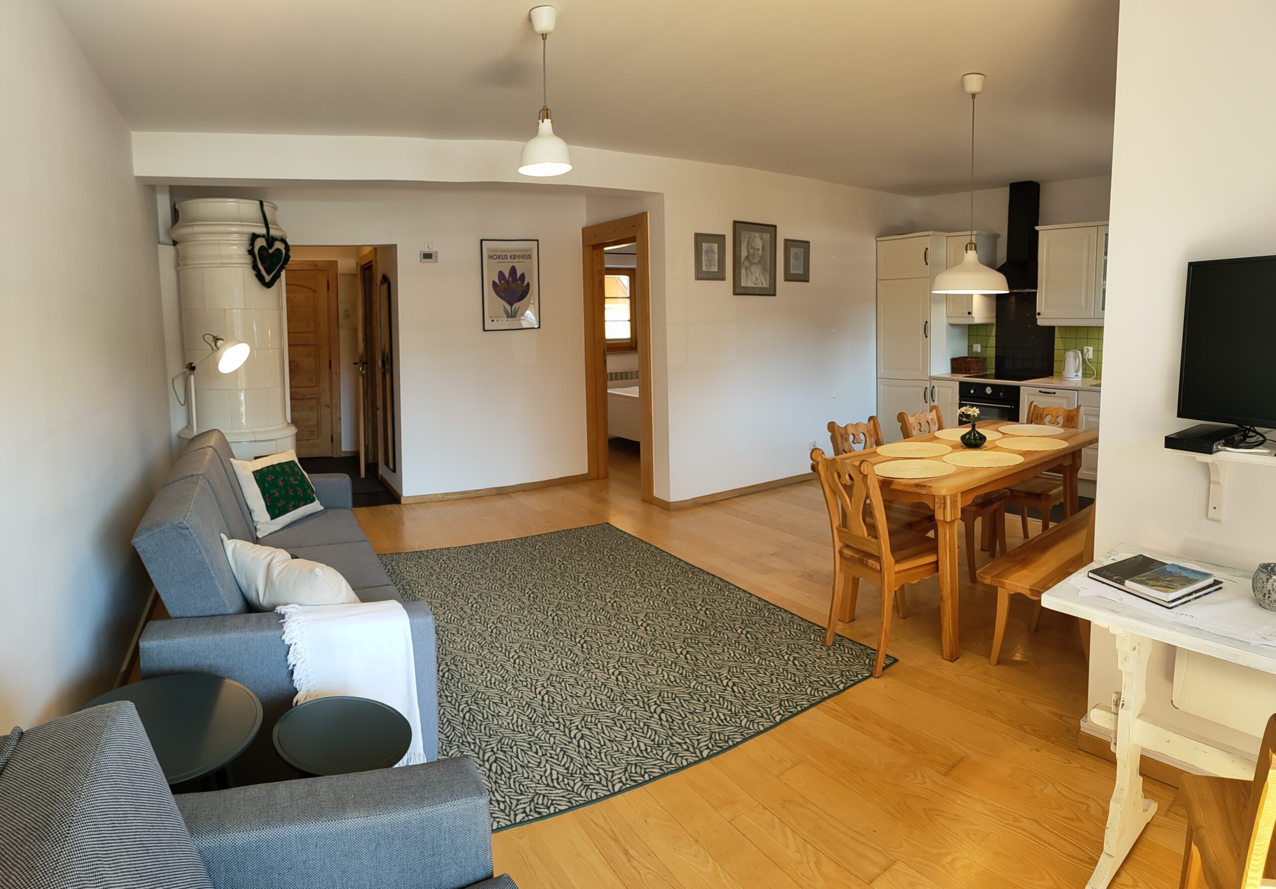 Кватэра 'POD-JASIENIEM' знаходзіцца на першым паверсе ў доме ў гарыстым стылі, мае асобны ўваход, уласную тэрасу і сад. Прасторная гасцёўня з міні -кухняй і прамым выхадам на тэрасу, утульная спальня і ванная пакой.